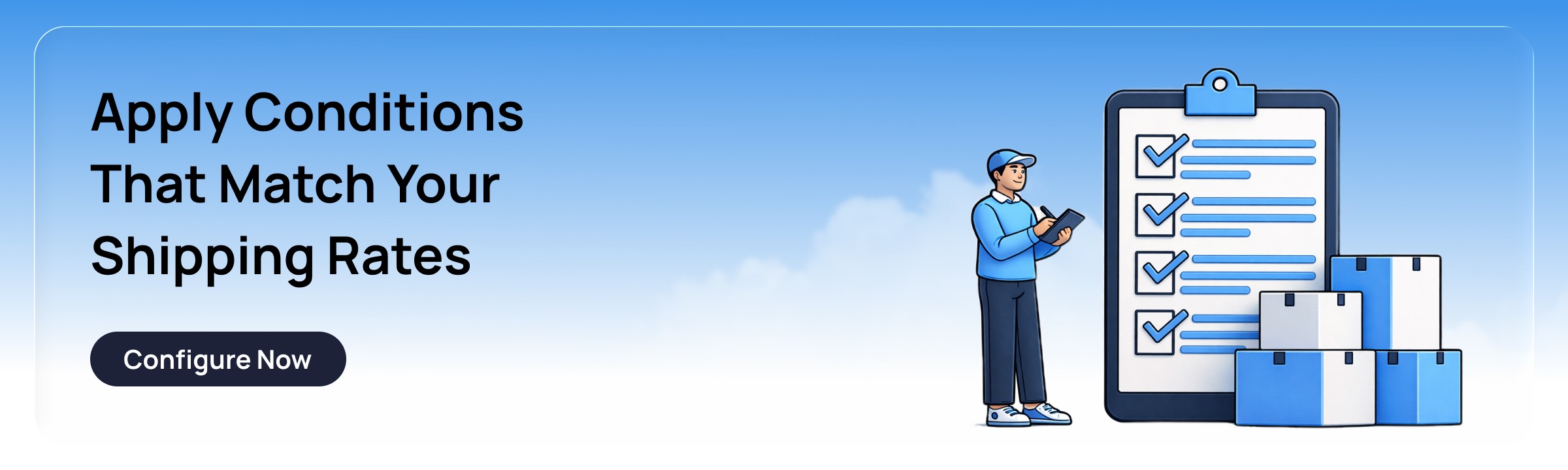 You can layer multiple conditions and define minimum and maximum ranges for each rule, helping you cover different order scenarios (without approximating rates) and keep shipping calculations accurate.